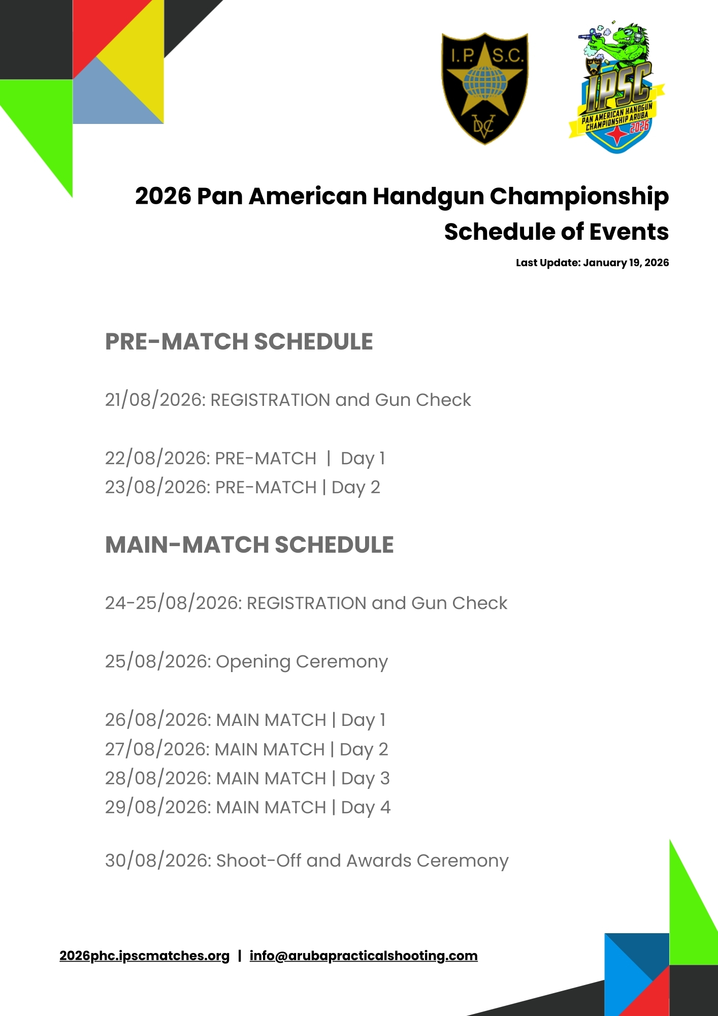 It is with great excitement that we invite you to join us for the 2026 Pan American Handgun Championship, set against the stunning backdrop of Aruba.